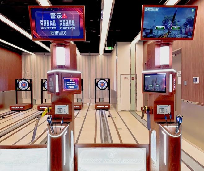 在项目设置上,潮玩运动馆也很有心思,比如射箭区,用可以前后移动的箭靶,方便初学者、熟手使用,弓的重量、种类也有不同,一些场馆设置了专业竞技、趣味体验两种,对应不同的弓箭,更多场馆则是采用最普通的弓——重量大,不需要调准星;保龄球区也不用换专门的防滑鞋,球重量也小,主打一个人人都能玩。