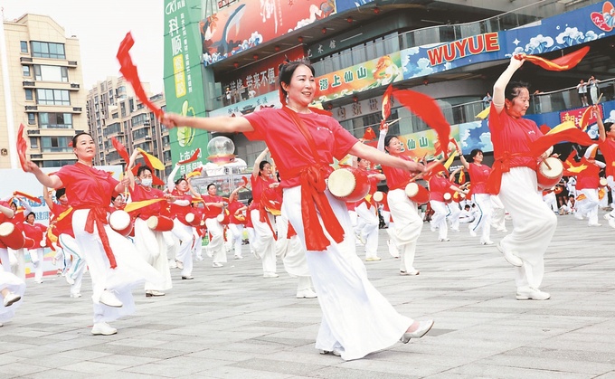 8月8日,连云港市赣榆区举行2025年“全民健身日”志愿服务主题活动。全区7支代表队、600多名志愿者通过参与健身腰鼓秧歌、职工广播体操等活动,在运动中感受健康生活的快乐。(朱代桂 摄)