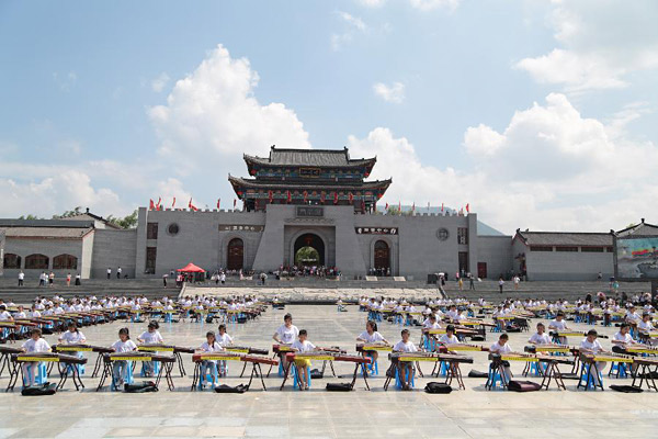 7月29日,人们在甘肃省平凉市崆峒古镇弹奏古筝。 当日,崆峒古镇举行第二届“百人筝会”,300余人共同弹奏古筝,演绎《荷塘月色》《渔Kaiyun官网中国舟唱晚》等曲目,声声悦耳,场面震撼。