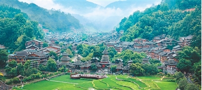青山环抱的侗寨,鼓楼群、风雨桥、吊脚楼错落有致,绿色稻田和古朴村寨相映成趣,侗族大歌、踩歌堂等民族文化活动多姿多彩。