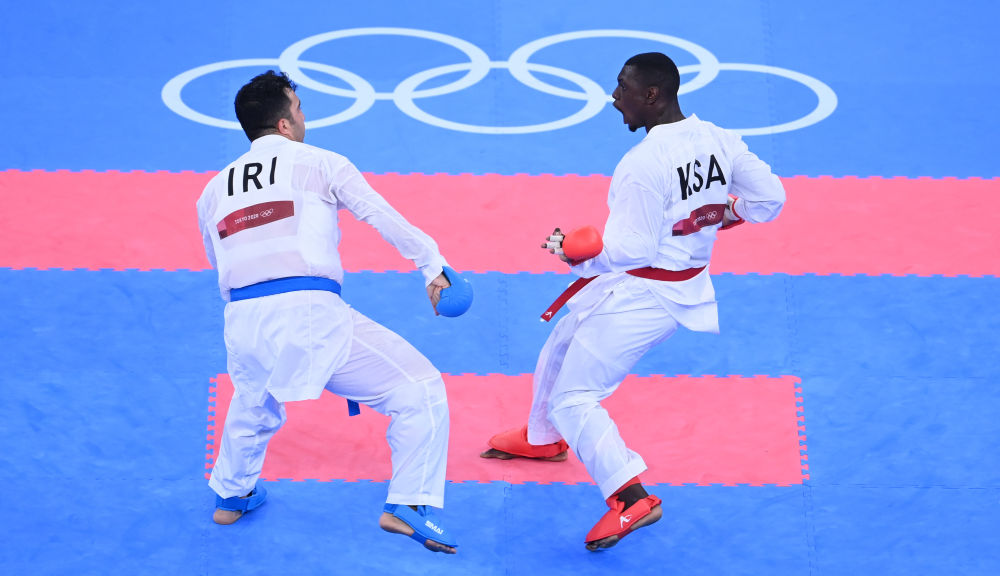 空手道作为“新增项目”之一进入了东京奥运会,但未能在巴黎奥运会上继续入围。图为东京奥运会,伊朗选手萨贾德(左)与沙特选手哈米迪在空手道Kaiyun/www.ningbolanke.com target=_blank>Kaiyun比赛中。黄宗治 摄