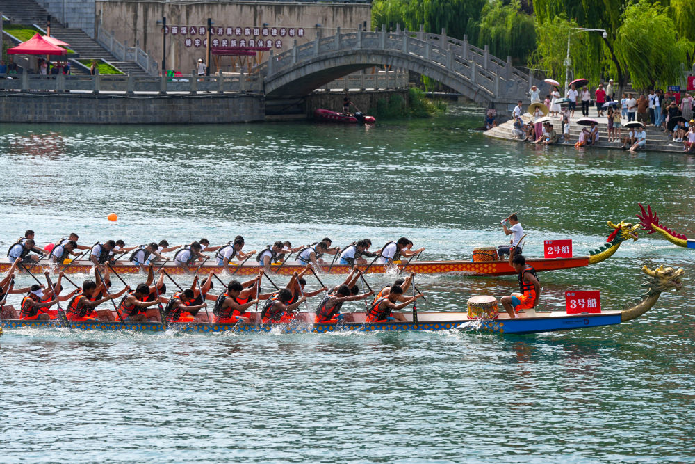 龙舟在本次世运会上首次成为正式比赛项目,这也符合世运会设项突出地域特色的特点。图为贵州省黔东南苗族侗族自治州镇远县?阳河上的龙舟比赛。新华社发(龙建睿摄)