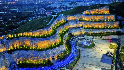 点灯山位于南宁市隆安县城,曾是隆安发展致富的“金山”,却一度成了百姓心中难以愈合的“疤痕”:采矿让山体“摇摇欲坠”,裸露的灰白岩壁像狰狞的伤疤,百米深的采石坑里积着浑浊的雨水,“小心落石”的警示牌下,过往塌方碎石堆映入眼帘。