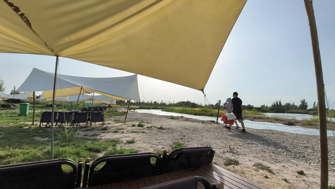初秋的孔雀河畔,夕阳余晖洒在波光粼粼的河面上,泛起金色涟漪。在新疆库尔勒市孔雀河下游这片曾是荒滩的土地上,27岁小Kaiyun平台官方伙孙益斌和团队打造的“绿州Camping”露营地正迎来试营业。