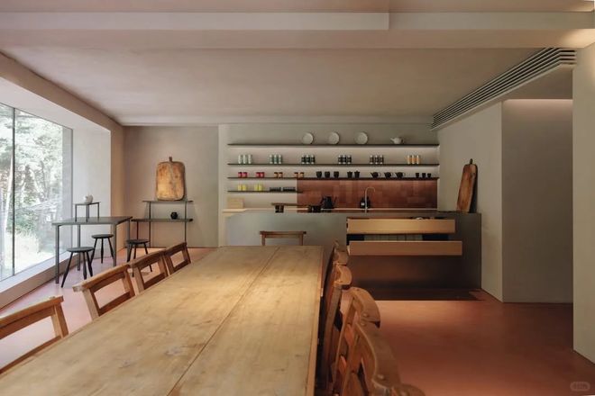 门店延续品牌标志性的极简主义美学,以木材、金属、混凝土与玻璃为核心材质,通过材质的自然肌理与克制色调营造静谧氛围。裸露的混凝土墙面搭配柚木陈列架,金属线条勾勒出利落轮廓,玻璃隔断引入自然光线,整体空间保留伦敦总店的质朴基调,使整个空间在极简布局中透出生活诗意,既保持品牌视觉辨识度,又通过天然材质融合,营造出契合亚洲审美的静谧内敛氛围。