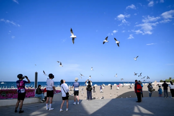 国庆期间,全国最大内陆淡水湖——博斯腾湖之畔的和硕金沙滩旅游度假区成为欢乐海洋。10月3日,2025年“新疆是个好地方•第二届金沙滩沙漠露营大会暨首届‘援疆杯’金沙滩沙漠体育大会”盛大启幕。以“2025新疆是个好地方•金沙滩双会共耀,千人健身嗨翻十一”为主题,吸引全疆各地650名户外运动爱好者纷至沓来,在大漠与碧水间畅享运动与自然交融之美。活动现场,金色沙滩上帐篷如繁星点缀,健康跑、沙漠拔河、沙漠龙舟、飞盘比赛等十余项群众性体育活动轮番上阵,欢呼声、加油声此起彼伏,构成一幅生动和谐的活力图景。“活动丰富有趣,孩子玩得尽兴,主办方还贴心准备了设施装备,金沙滩的美景更是让人陶醉,不虚此行!”来自外地的游客张强赞叹道。