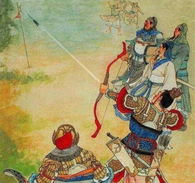 吕布辕门射戟,之前已经喝了好多酒,酒后的力量和准星肯定不准,然而他“弓开如秋月行天,箭去似流星落地”一箭射中150步外方天画戟的小枝。在射箭方面,吕布说第二,无人敢说第一。