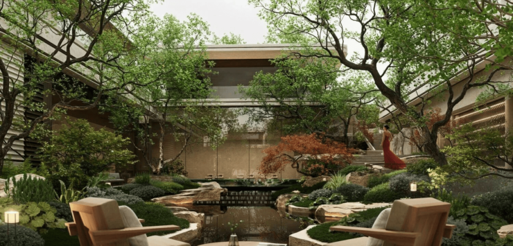 项目打造建面约189㎡、248㎡、289㎡天地院落,跃层空间+地下室+户外庭院设计,原创「流体破界」建筑之美学,让家生长于立体自然之中。自此,生活既有仰望的开阔,亦有俯身的从容。