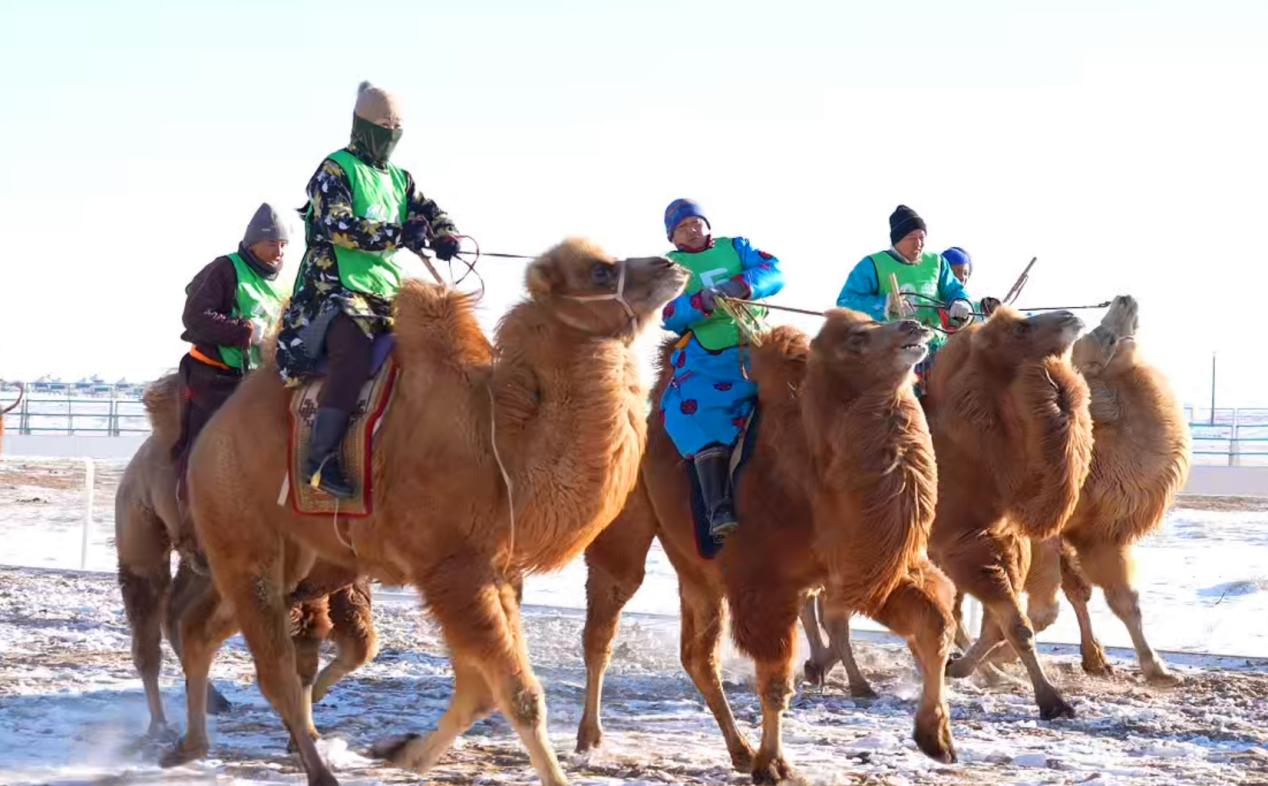 雪与沙,驼与马,来那达慕看争霸。1月27日至28日,在脑木更苏木大红山国家地质公园,“蒙古马超级联赛”与“大红山骆驼争霸赛”联袂上演。蒙古马万米耐力赛、走马竞赛、跑马射箭彰显“草原骄子”的飒爽英姿;骆驼耐力赛、种公驼选美、母驼评比及骟驼装饰评比,则全面展示“沙漠之舟”的独特力量与美学,为摄影爱好者提供绝佳素材。同期举行的传统搏克(成人组)、男女射箭及独特的“巴日盖”(冰上沙嘎)比赛,让“男儿三艺”在雪原焕发新生。