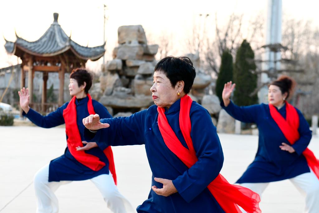 2025年12月30日,山东省滨州市惠民县的老年人在练习太极拳。新华社记者 郭绪雷 摄