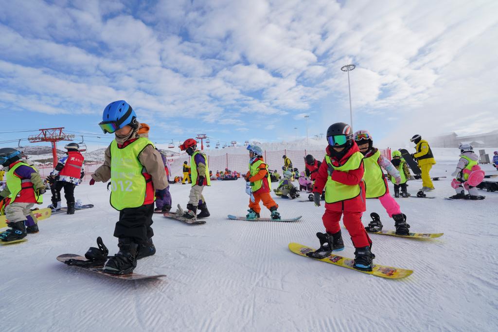 2025年12月1日,学生在阿勒泰将军山国Kaiyun开云际滑雪度假区练习单板滑雪。新华社记者 阿曼 摄