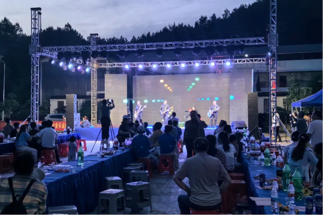 从下午3点到晚上10点,农庄的露天舞台化身为热闹非凡的“乡村音乐节现场”。专业乐队和金牌主持轮番上阵,动感的旋律、激昂的歌声瞬间点燃全场。游客们挥舞着荧光棒,跟着节奏尽情摇摆,欢呼声、喝彩声此起彼伏。