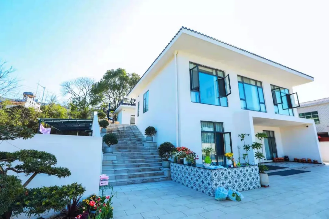 风吟谷位于桐木村,山林环抱、郁郁葱葱,和白色风车相依相伴,每间房都是欣赏风景的窗口。