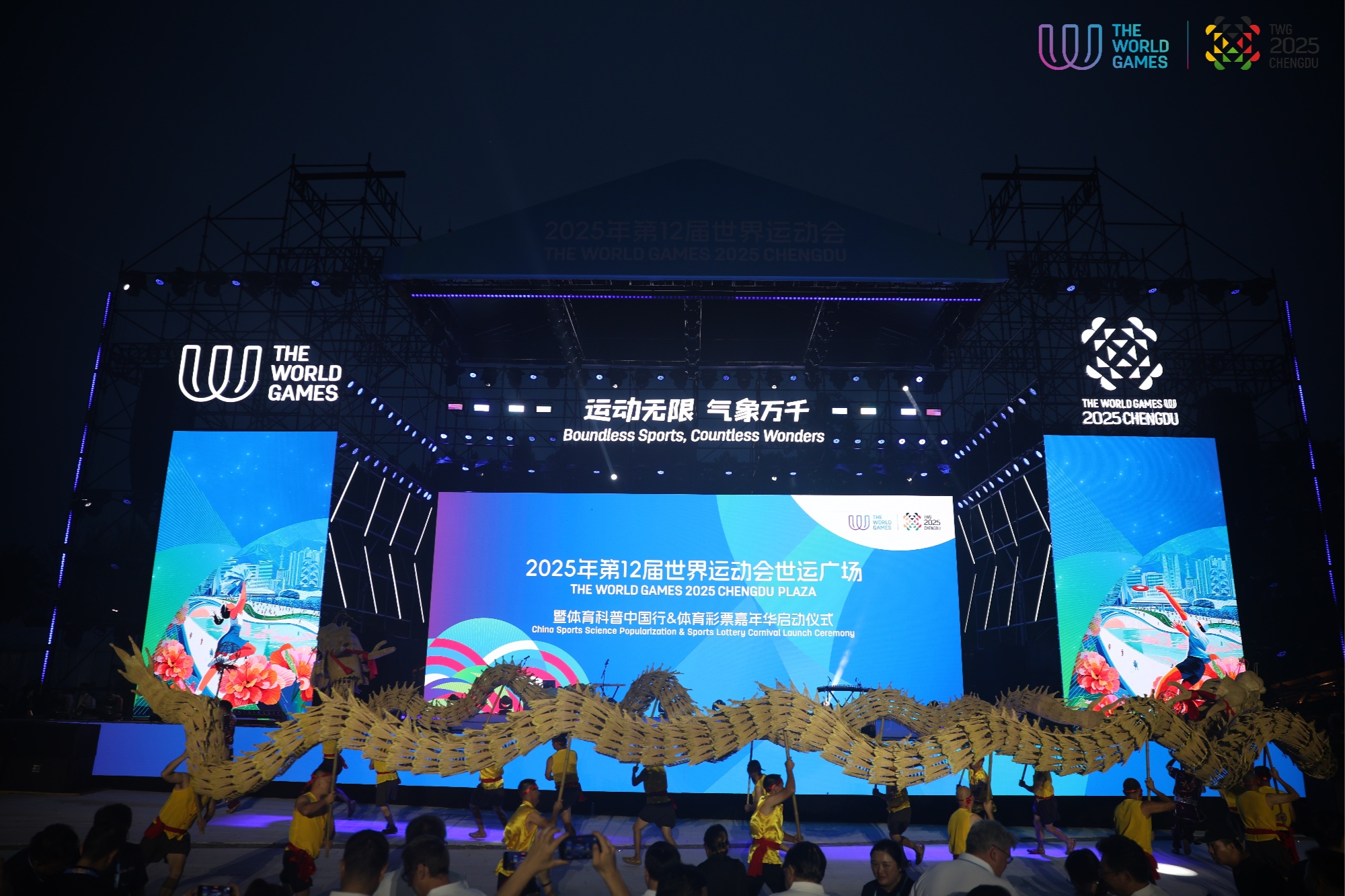 启动仪式前,来自四川乐山的国家级非遗沐川草龙表演队舞动起栩栩如生的金龙。随着金龙的翻腾跳跃,四面八方的游客纷纷汇聚至舞台前,数千群众共同见证世运广场启动。