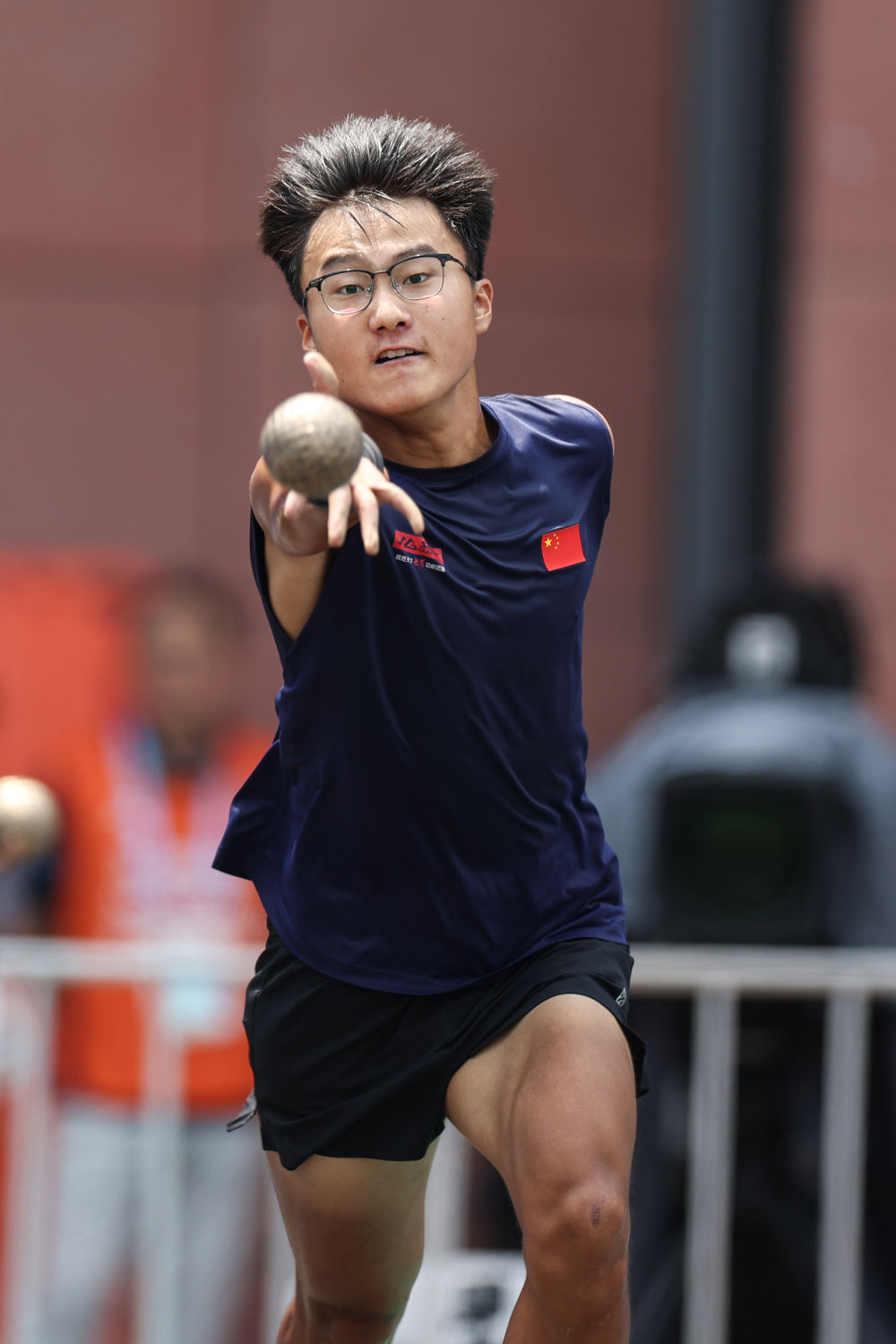 8月14日,中国选手张晓辉在2025年成都世运会大金属地掷球混合双人连续抛击资格赛预赛中。地掷球运动起源于古希腊,在法国最为流行。